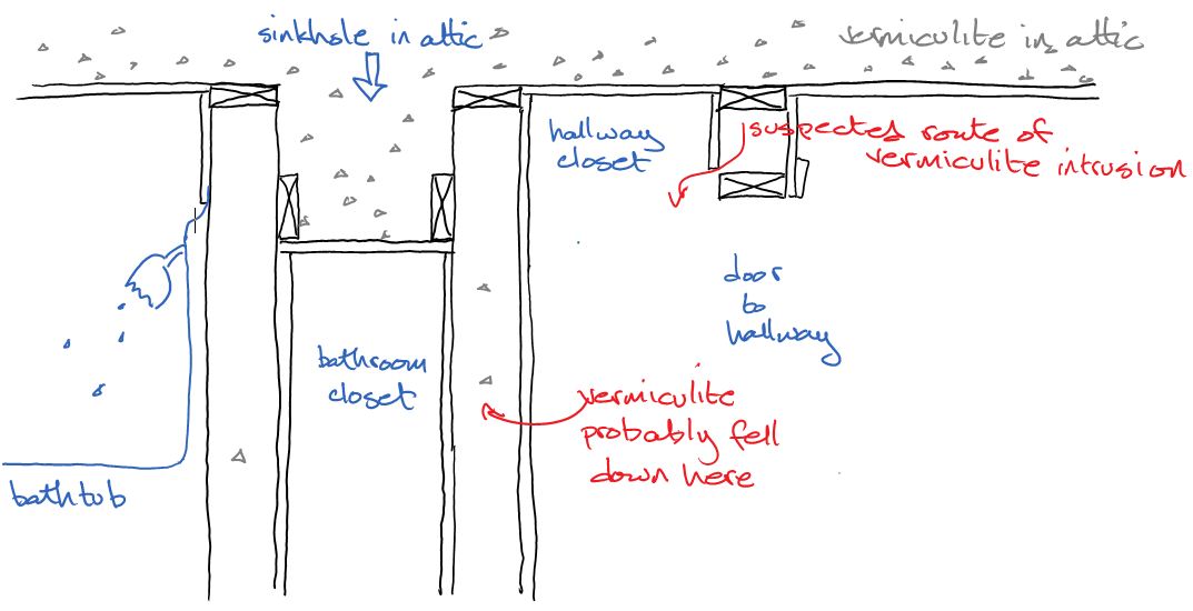 When our solar installers obligingly remove the soffit for us, guess what? Vermiculite, that’s what. Turns out that spot was just as inaccessible to the vermiculite removal folks as it is to me. So much for not exposing our workers to hazards.